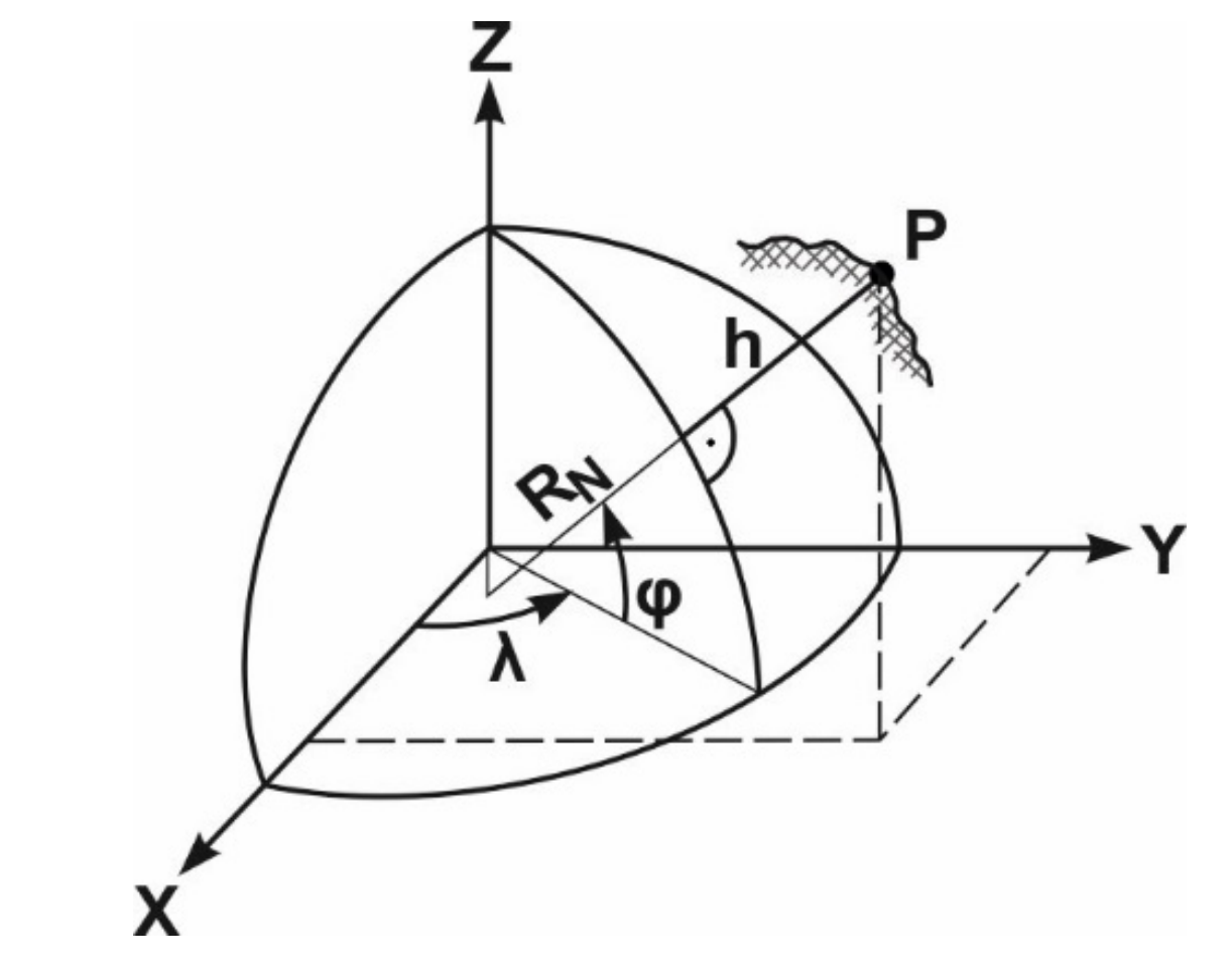 1. Determine the reference point’s ellipsoidal (LLH) coordinatesin the ECEF system. This point will be the origin of the ENU system. Let's denote the latitude as