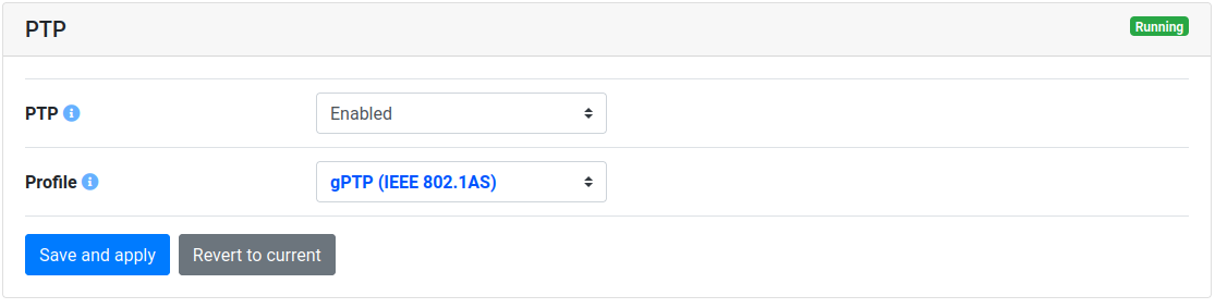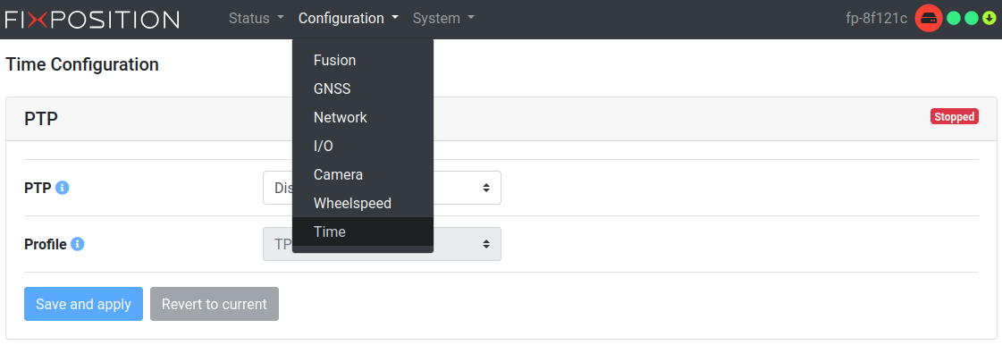 The following three PTP profiles are supported and can be selected in the Profile drop down menu, whereas gPTP poses as our recommended standard PTP profile to use with the Vision-RTK 2. This recommendation applies to all currently available firmware versions.
