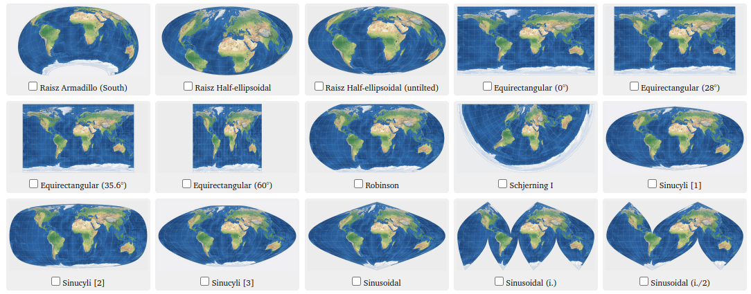 Many different local projection systems exist to generate local and/or global maps. These can be selected in order for the corresponding maps to have properties such as: