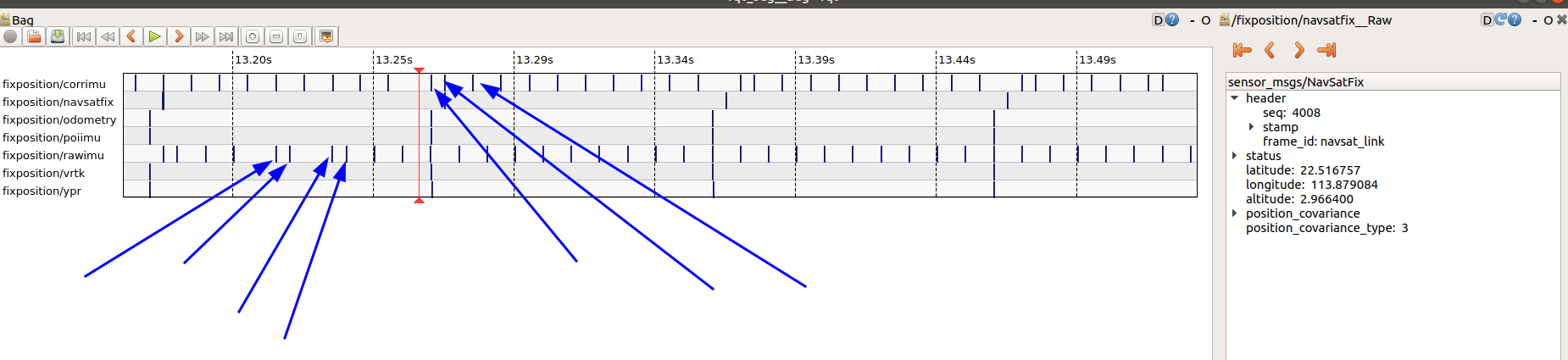 The output rate of the rostopics published by the Vision-RTK2 ROS driver is accurate. However, when looking at the recordings or plotting the received messages, the user might observe the following behavior: