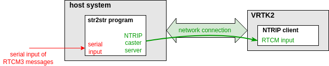 For this, we run the str2str program (download links below) on a host system that is network-connected with the VRTK2 (any network connection will work).