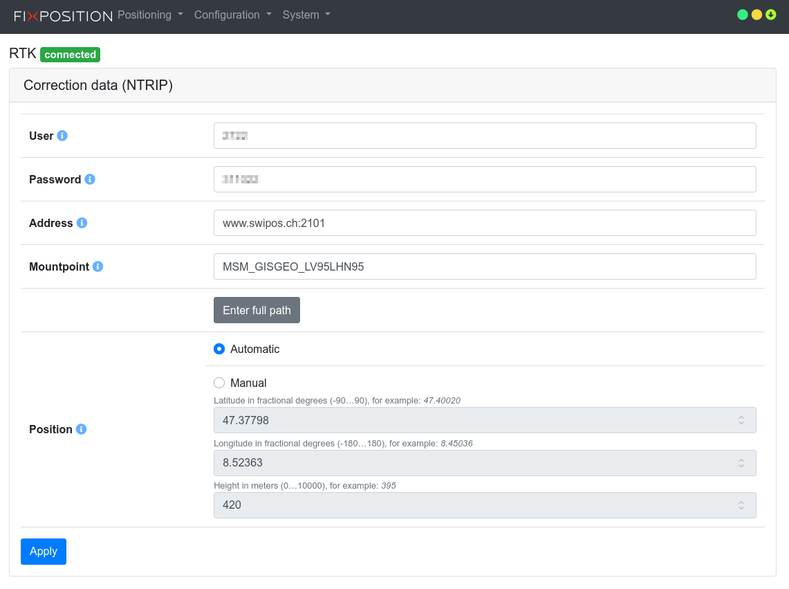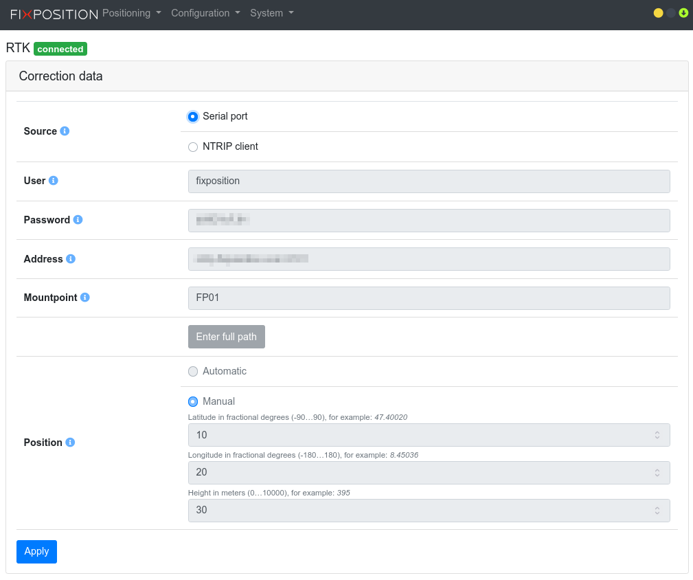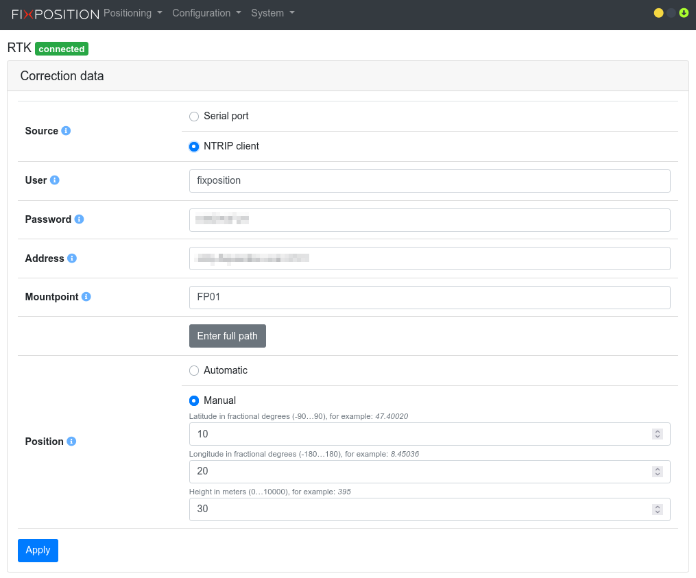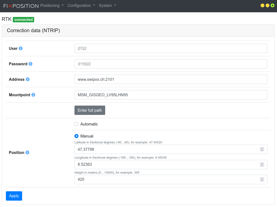 RTK correction data (web interface)